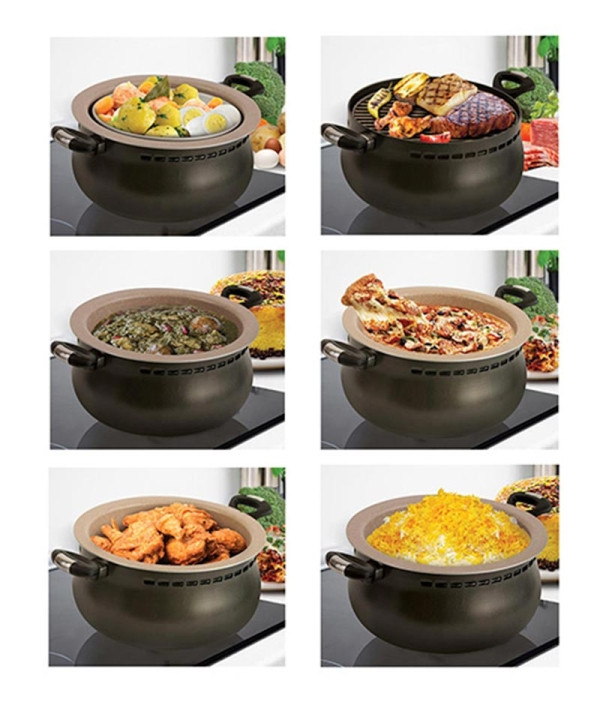 اختراعی بی نظیر شامل مجموعه کاملی از کارایی های تمامی دستگاهها و ظروف پخت وپز آشپزخانه دریک ظرف.